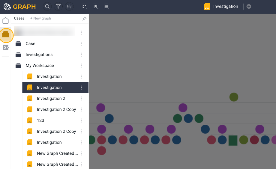 Clicking on the graph name opens a sidebar showing the folder where the graph is saved within Maltego Cases.