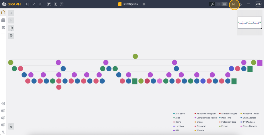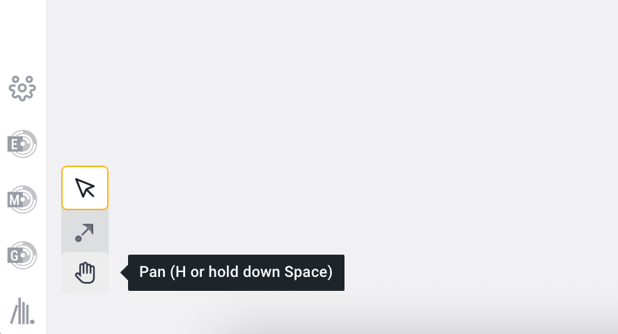 Panning/selection/link mode switch tool at the bottom left of the Graph View allows you to either select multiple Entities and links simultaneously, move your view within the graph, or link Entities manually.