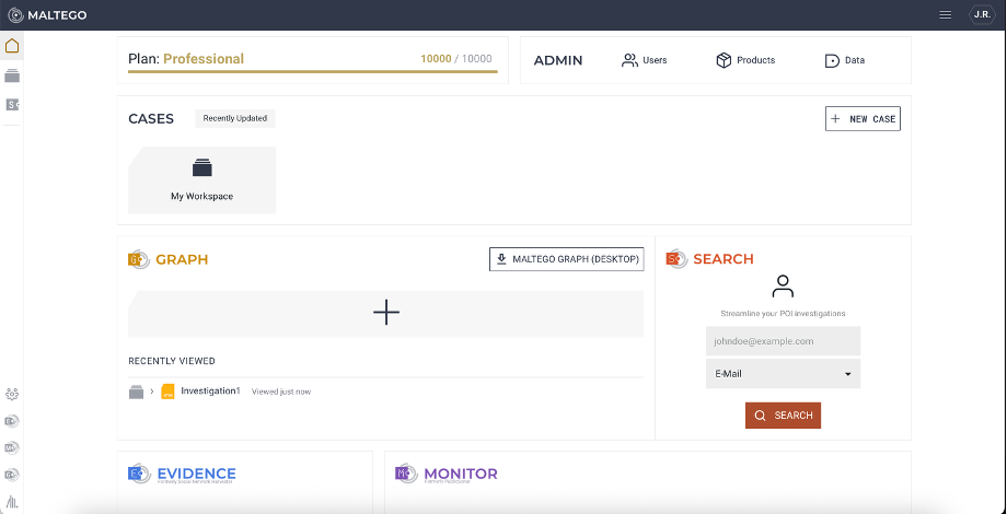 - Maltego app where you can access Cases and widgets for other Maltego products.