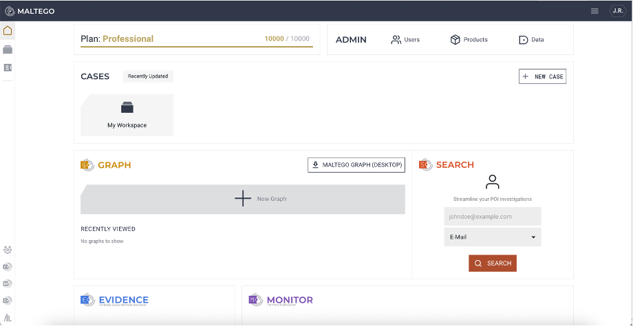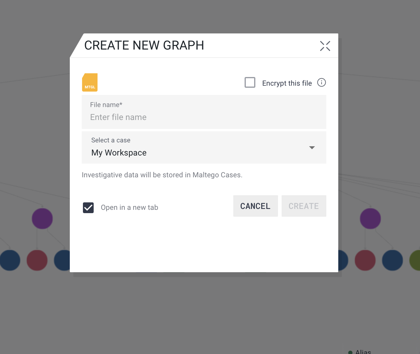 In Maltego Graph (Browser), users can create new graphs in several ways depending on their workflow. Typically, users initiate a new graph after completing a search or navigating from other components like Maltego Cases.