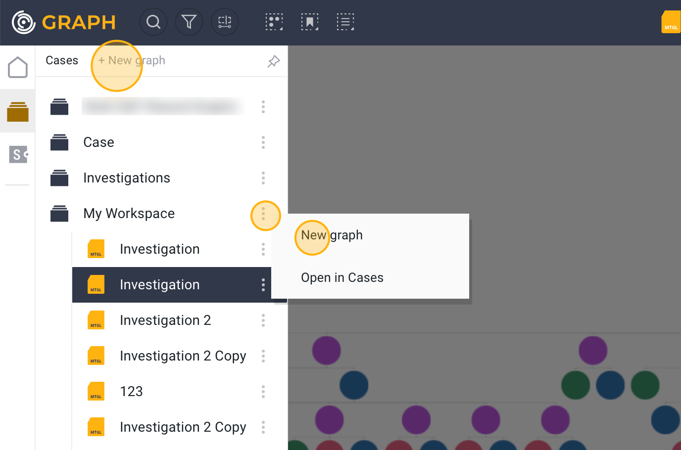 • Alternatively, click the three dots next to a case folder and select New Graph.
