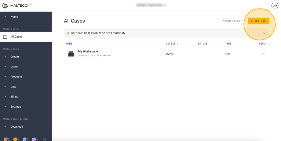 • Expand the Maltego Cases drawer by clicking on the icon.