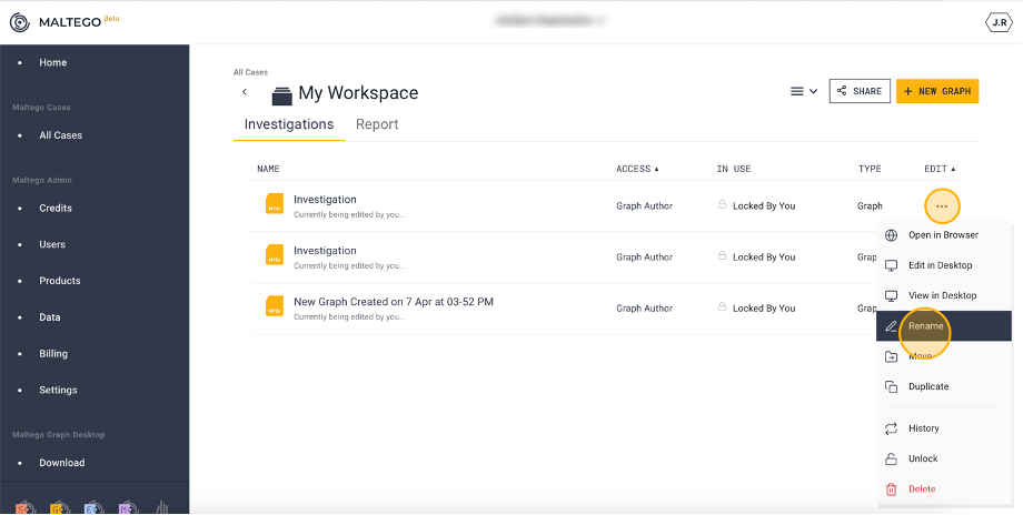 There are two ways to rename a graph in Maltego Graph (Browser.)