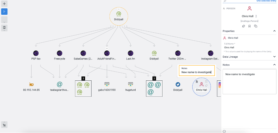 To add a note to an Entity in Maltego Graph (Browser), follow these steps: