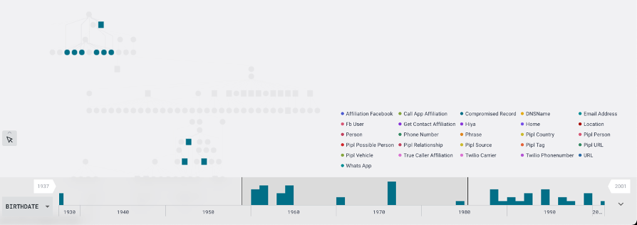 When activated, investigators can select a specific property to analyze. Maltego Graph (Browser) then displays a histogram that represents the distribution of values across that property. Investigators can narrow the focus by adjusting the time or number range using draggable black markers on the histogram. This allows them to quickly isolate and highlight the most relevant Entities within that specified range.
