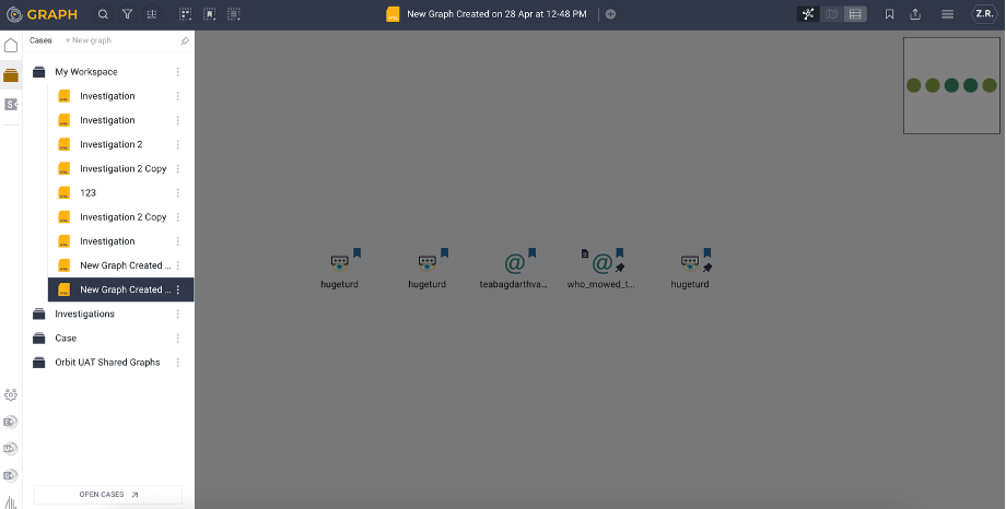 A new graph will automatically open in a new tab and be saved as a case in Maltego Cases, with an auto-generated name.