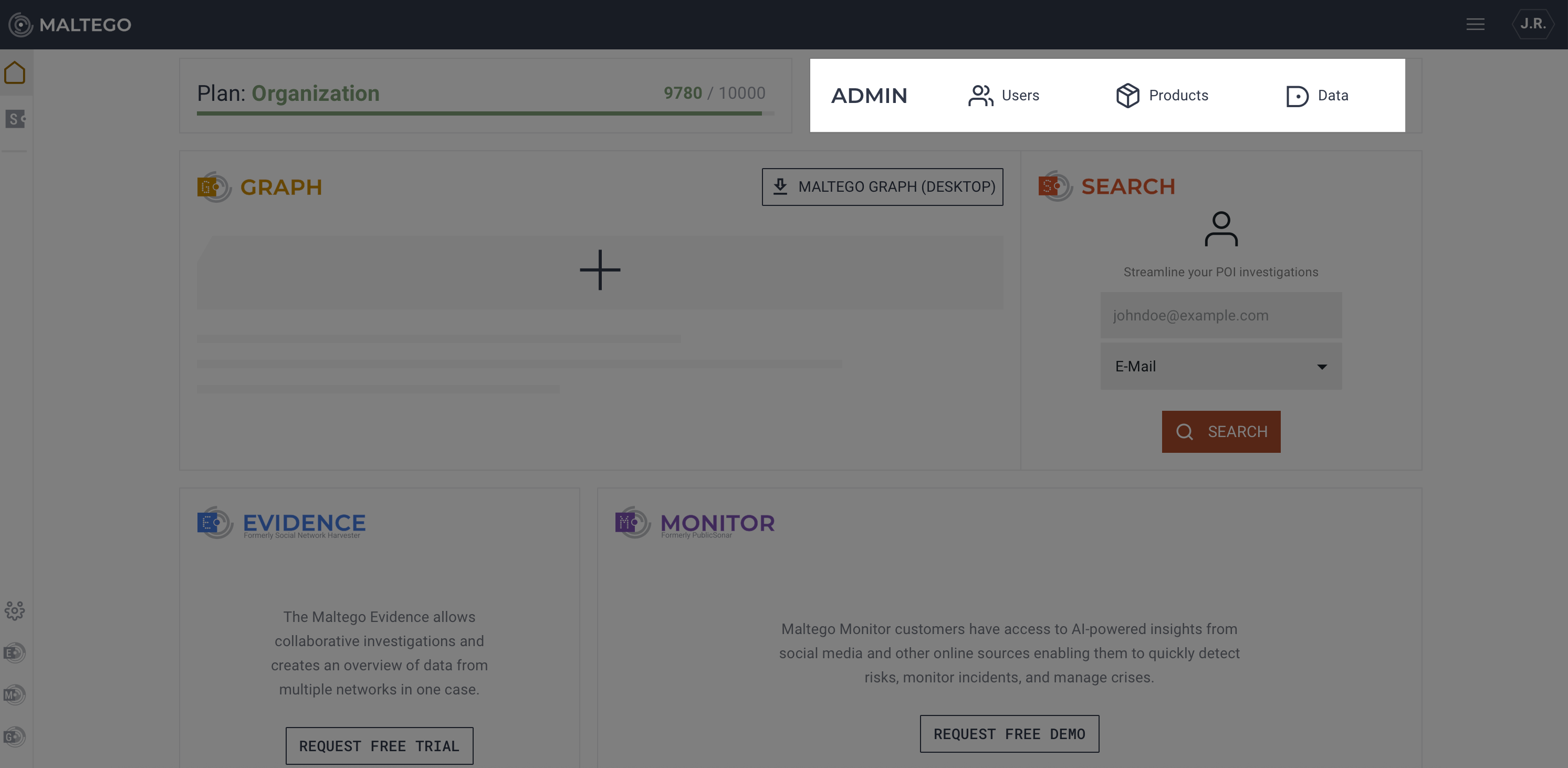 To begin using the Maltego platform, users must first identify their assigned role, which is determined by the organization's subscription plan.
